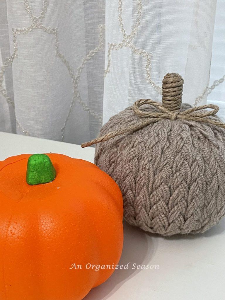Several of the crafts in this post and the pumpkin in the above picture were made with items from Dollar Tree that cost $1!