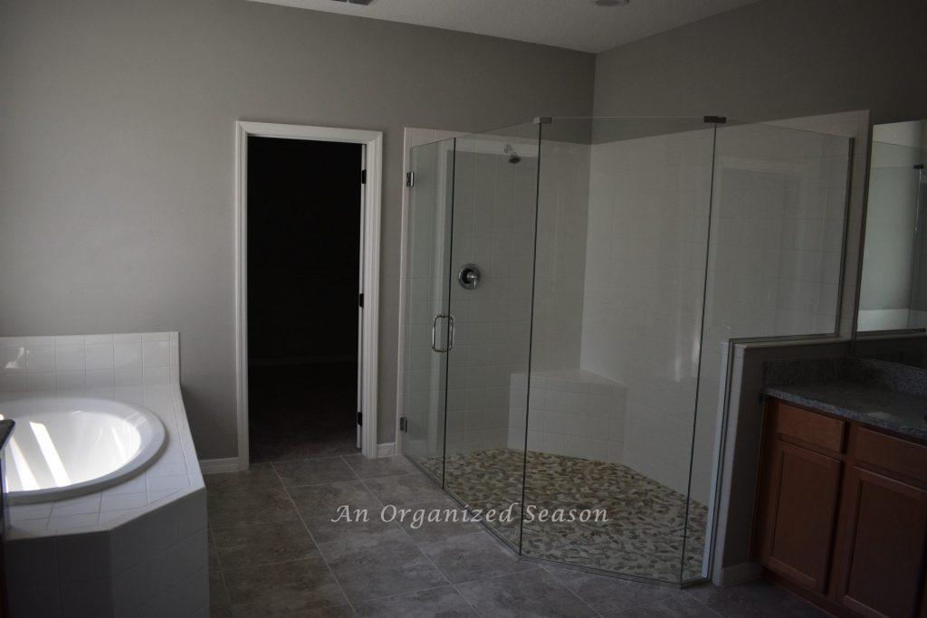 So imagine our surprise when we first walked into our new bathroom—with its oversized walk-in shower—only to find a teeny-tiny shower head that felt entirely out of place.