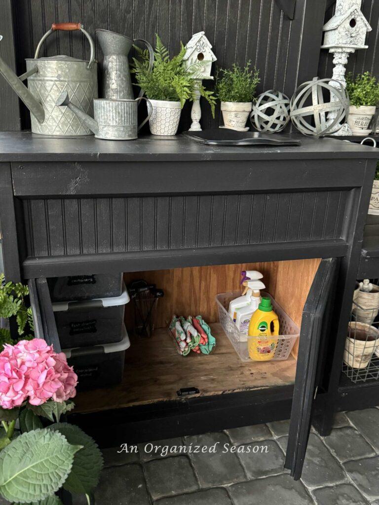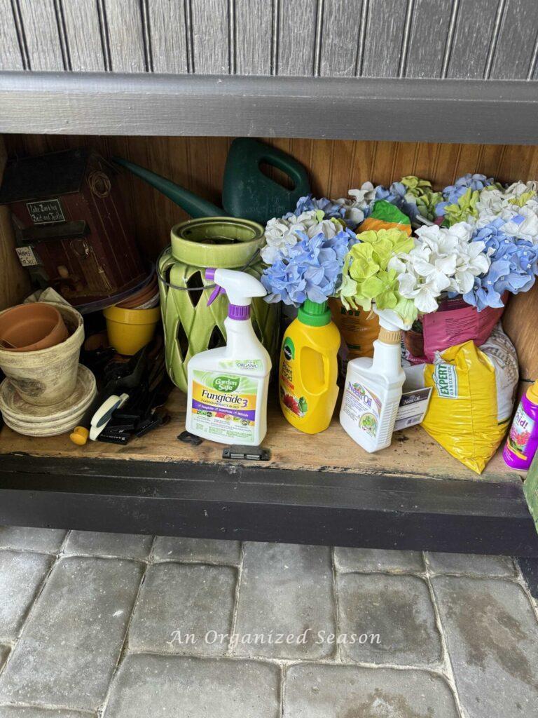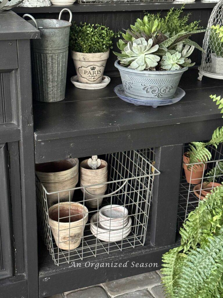 Need a place to store your gardening supplies? Use these easy ideas to organize a potting bench with style!