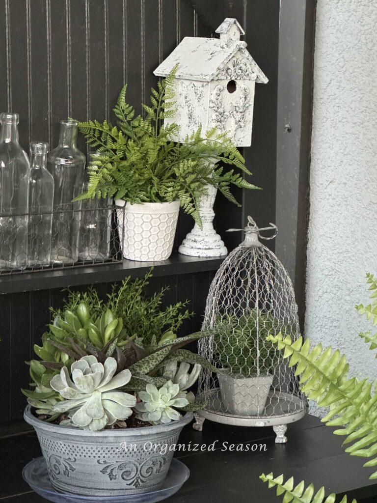 Right now it’s decorated with faux plants, while I’m deciding what I want to buy for this season!