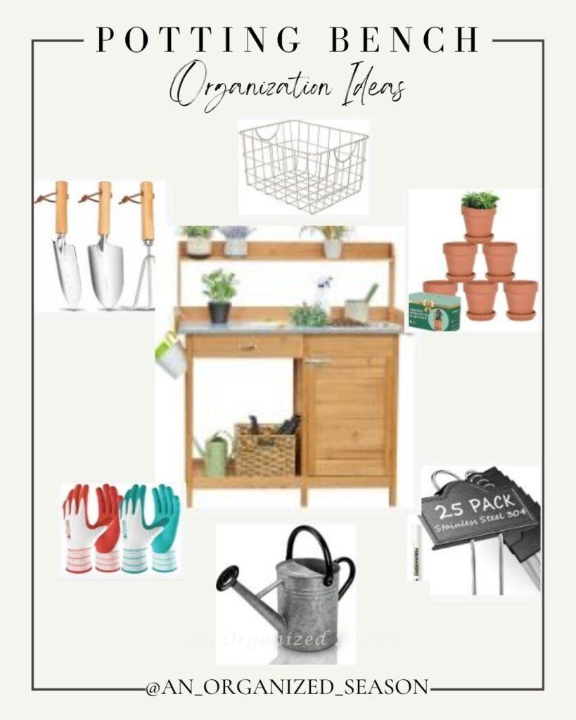 - Measure the potting bench before purchasing containers to hold items you want to keep.