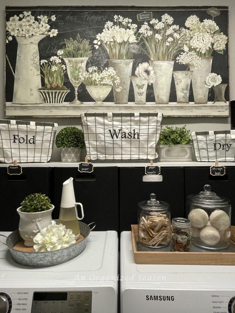 We shared tips to create a beautiful and organized laundry room!