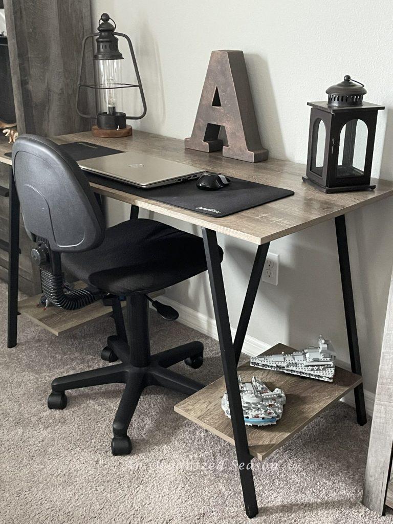 This desk is in our youngest son’s room. He needs a place to put his computer when he visits us. Since he did not need storage space, we were able to purchase a desk without drawers or cabinets.