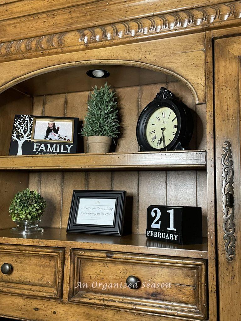 If you don’t have a desk that has drawers or cabinets, modify my suggestions by using a bookcase or adding shelves to a wall.