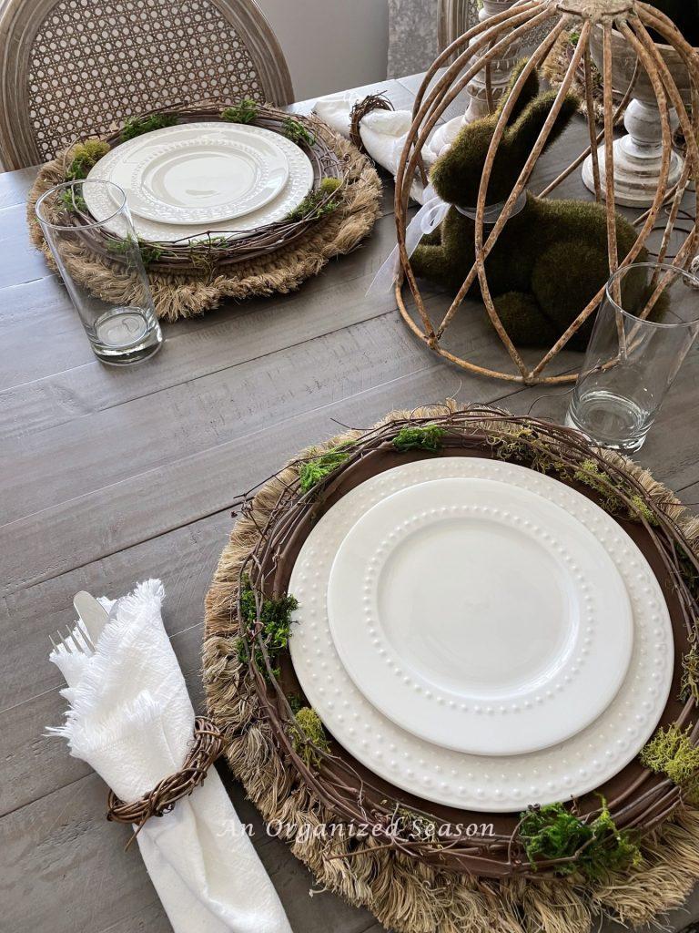 I made the chargers from a grapevine wreath and moss! See the DIY here!