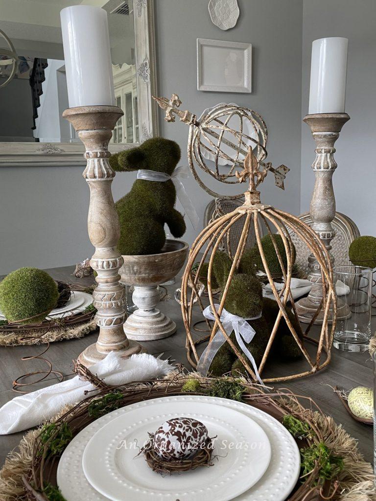 Wow! What an organic tablescape! I love all of the decor items you’ve pulled together! Sometimes a fabulous Easter tablescape doesn’t have to include a pastel color scheme.