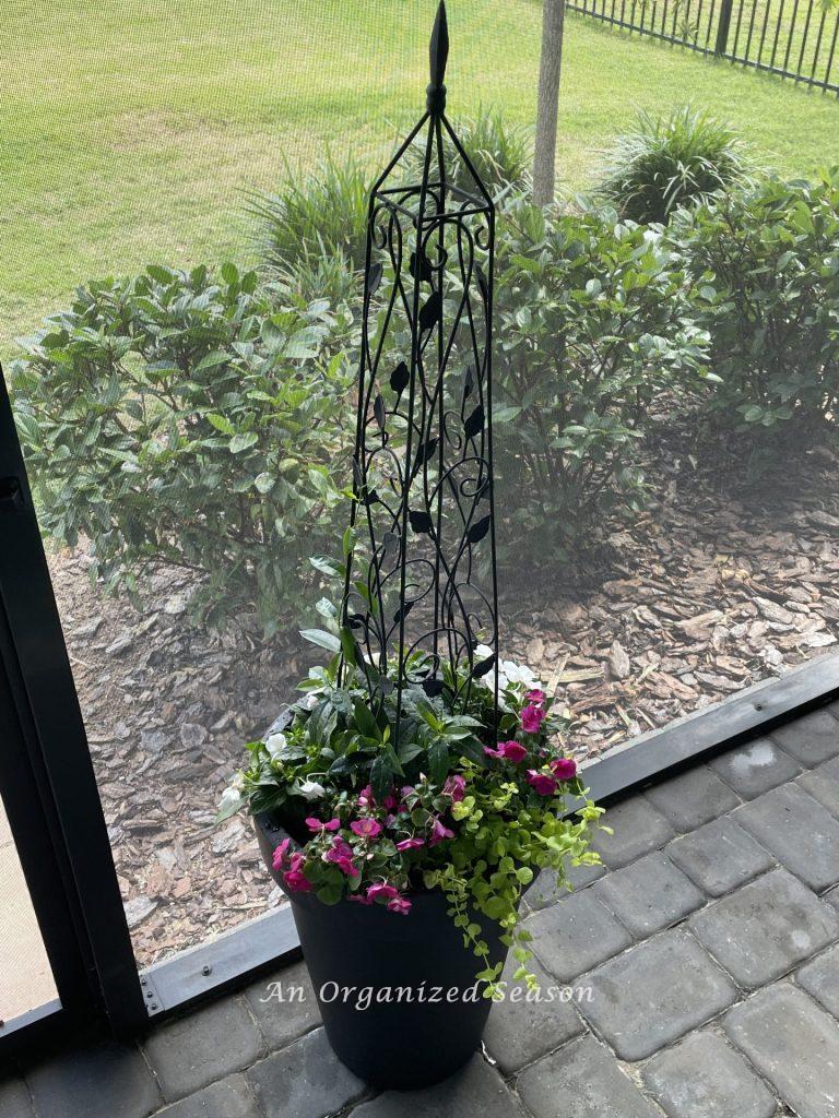 Put the obelisk into a flower pot