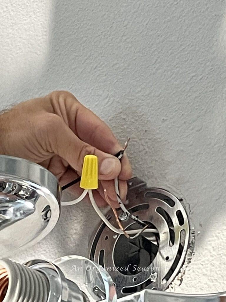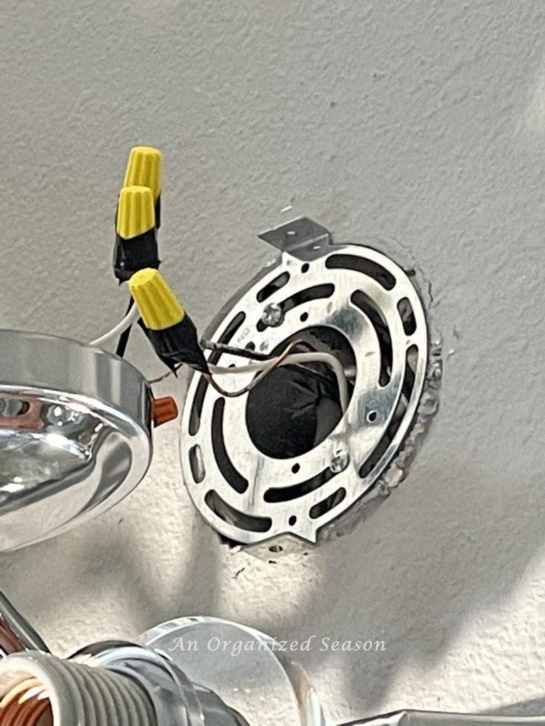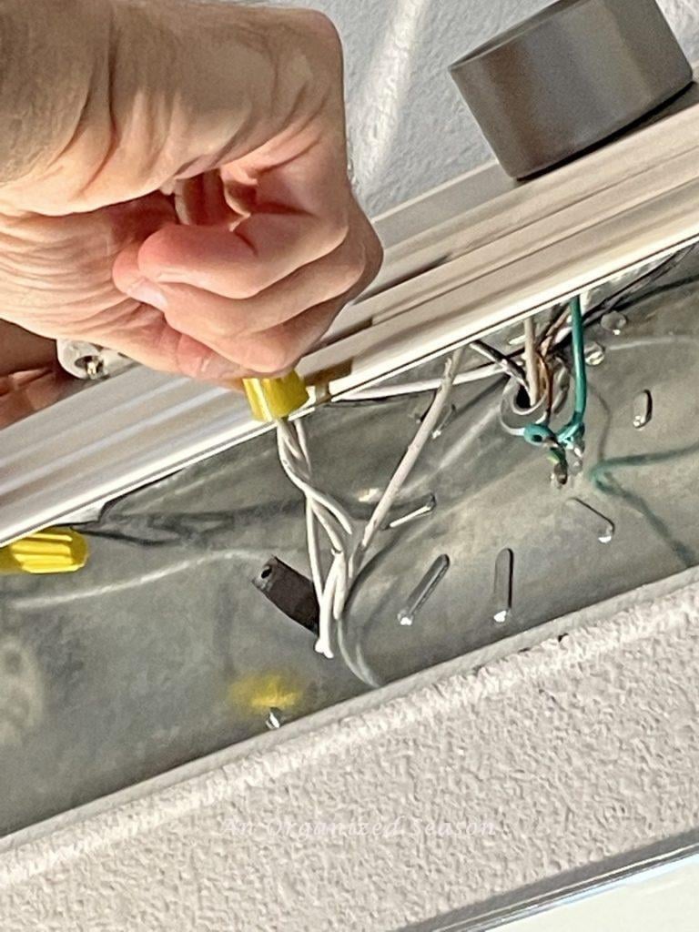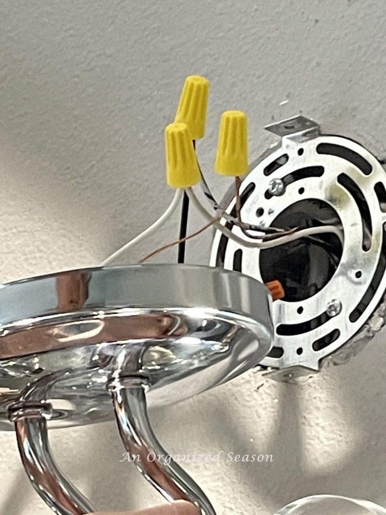 Tip: Have a second person to help hold the fixture up while you work on connecting the wires. It’s much easier with two people, and you won’t worry about dropping your new fixture.
