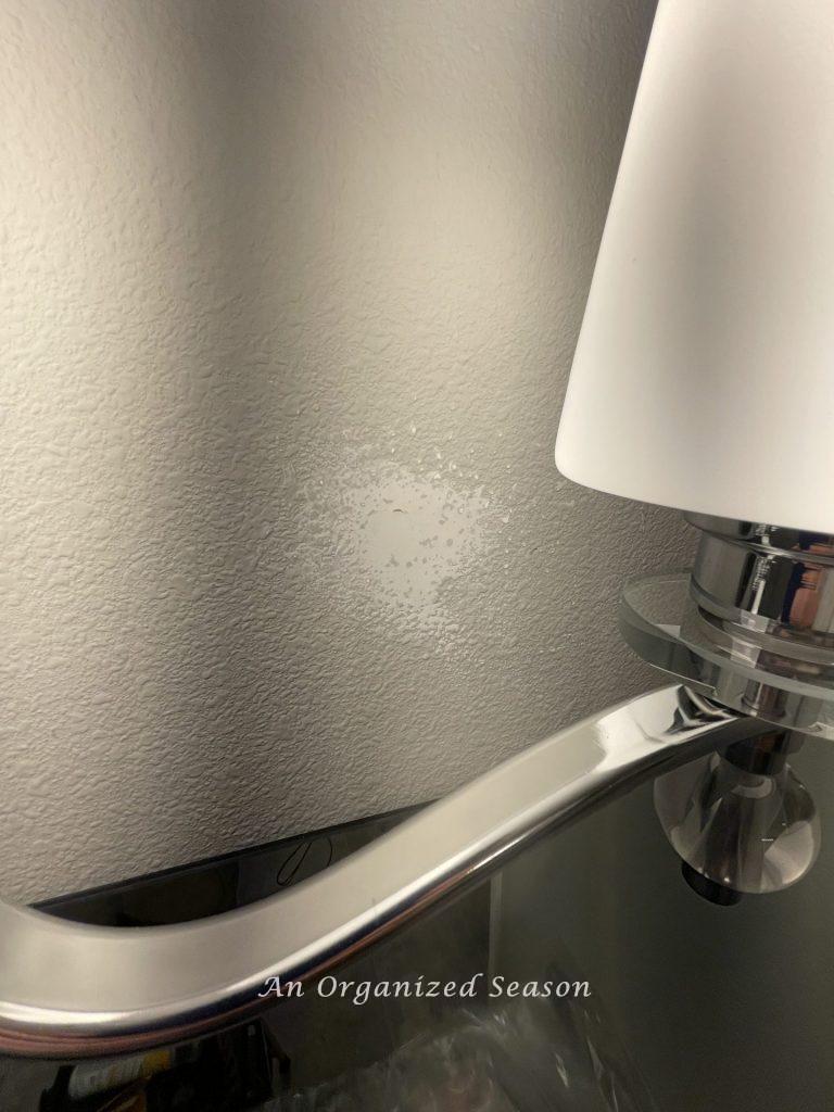 First, we repaired the holes in the wall with a drywall spackle.