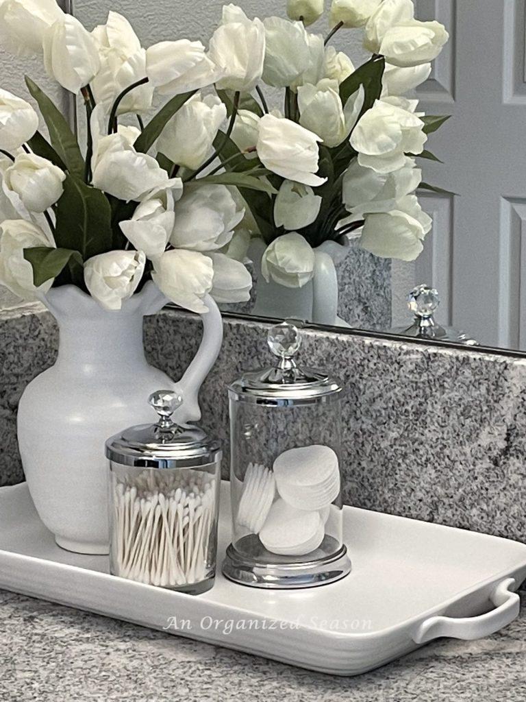 I used the large tray to hold a simple vignette with functional canisters!