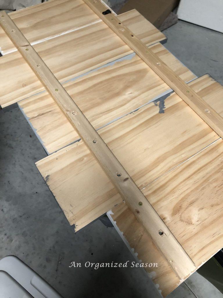 All the boards for our letter coat hangers are cut and painted. It’s time to attach them using 1″ X 2″ wood boards.