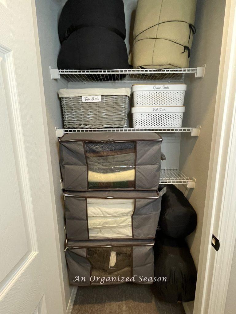I know it’s so easy to close the door on a linen closet and forget about the clutter but you’ll be so glad you organized it, once it’s done! Those bags made organizing so easy! Good luck, Donna