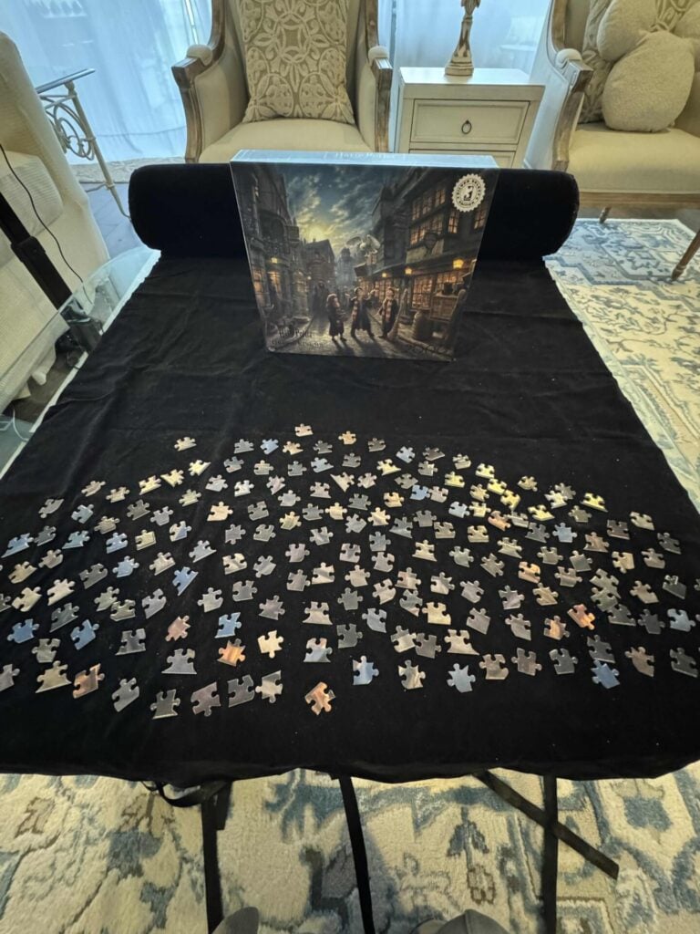 You see, for Christmas, my brother gifted me a brand-new puzzle—Thomas Kinkade Studios: Harry Potter Diagon Alley—and let me tell you, this one is no joke.