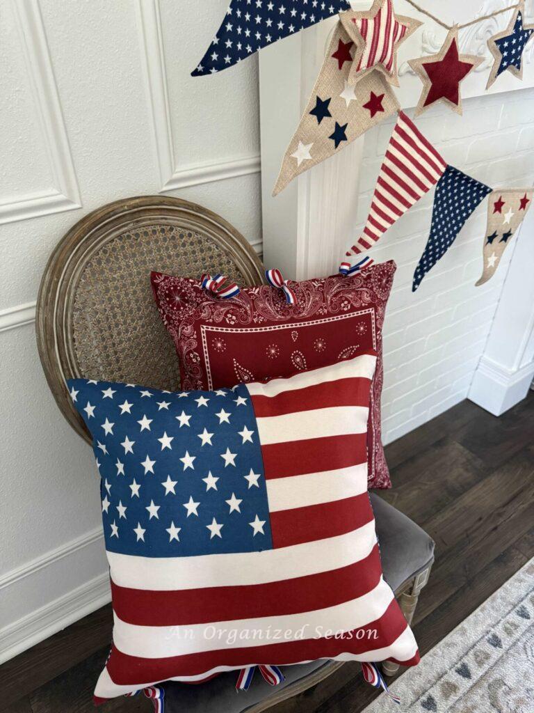 - We decided to add a bit of patriotic flair to our home by making these festive pillows from Dollar Tree bandanas!