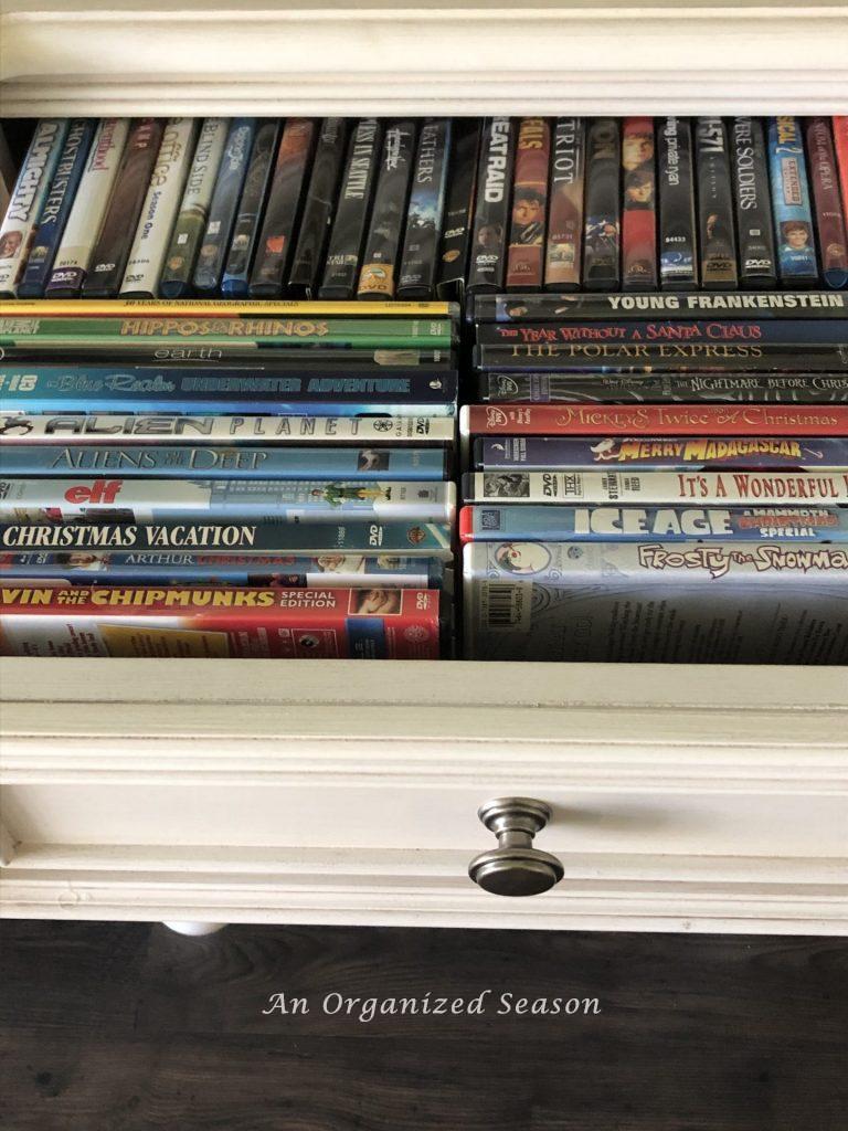 At first, I thought I could store the DVDs in the drawers of our TV console table.