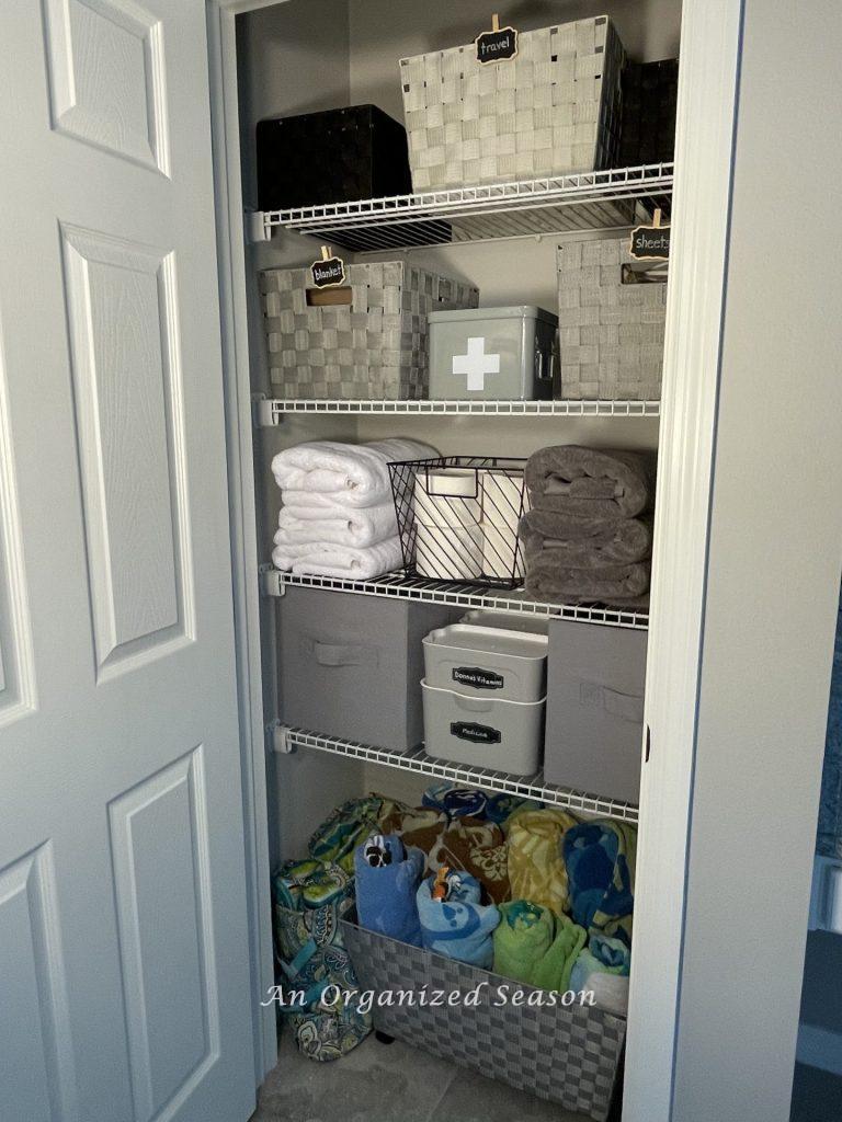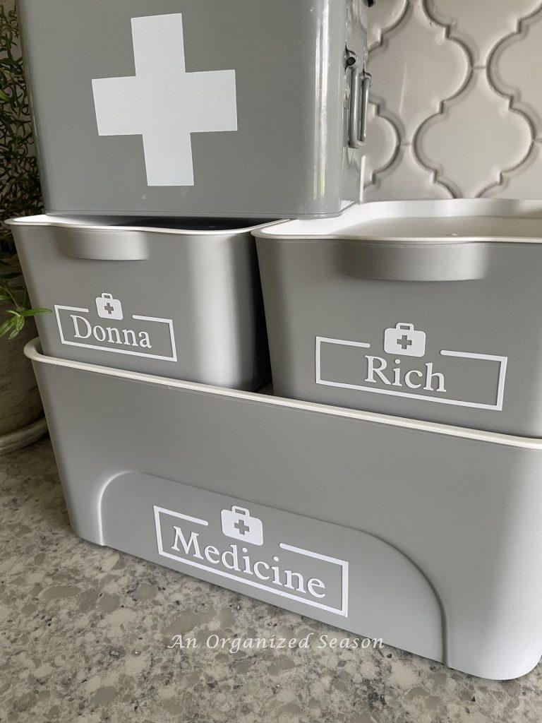 Like many people, I was storing our medication in the bathroom. We don’t have a medicine cabinet but I do have the bins in the bathroom closet.