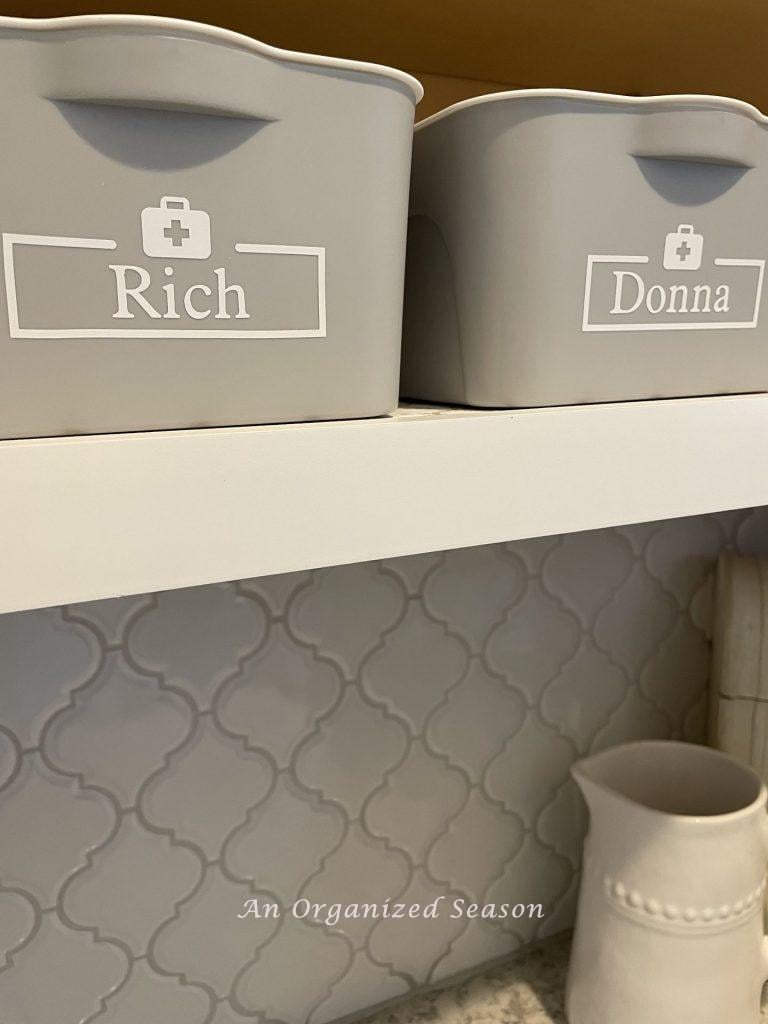 Our two smaller bins hold the vitamins/medicine Rich and I take daily.